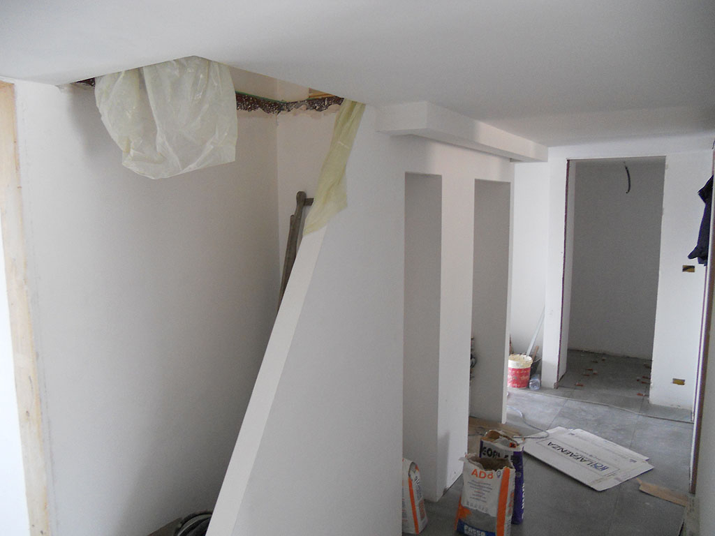 | Casa F_M L’appartamento è posto all’ultimo piano sottotetto di un edificio in C.A. di nuova edificazione. L’esigenza era quella di uniformare gli spazi, cercando di utilizzare il volume presente. La caratteristica principale è la realizzazione di un soppalco centrale da destinare in parte a deposito ed in parte a zona notte, nella stanza dei bambini. Il soggiorno, caratterizzato dalla pendenza del tetto, forma un open-space con la cucina. Il bagno principale reinterpreta il tema del nastro. Esso svolge una funzione di divisione degli spazi (sanitari, doccia, lavabo). Gli ambienti sono costituiti da soggiorno-cucina, deposito soppalcato, bagno, lavanderia-stireria, camera bimbi soppalcata, camera per gli ospiti, camera matrimoniale, bagno di servizio.Anno di realizzazione: 2012-2013 Località: San Giovanni in Fiore (cs)