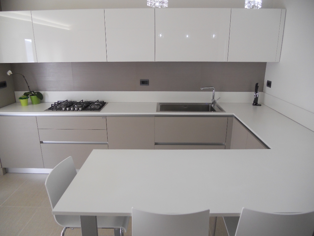 | Casa G_AL’ intervento prevedeva la ristrutturazione dell’ immobile sia dal punto di vista estetico-funzionale che impiantistico. Posto all’ultimo piano di un edificio in C.A. , l’immobile, è caratterizzato da forma irregolare e da una terrazza comunicante con la zona living. Particolare attenzione è stata posta nella realizzazione della cucina e della camera matrimoniale. La cucina di tipo ad L, con penisola terminale, risulta autonoma rispetto alle colonne poste sulla parete opposta. La camera matrimoniale è caratterizzata dalla cabina armadio dalla quale si accede ad un soppalco praticabile. Quest’ultimo è caratterizzato da armadiature ad uso deposito. L’illuminazione è di tipo indiretto a led. Lavorazioni in cartongesso hanno permesso di evidenziare le zone funzionali oltre ad incassare arredi e zone di lavoro. I faretti in gesso hanno armonizzato i soffitti rendendoli un corpo unico. Pitture e carta da parati aumentano la vivibilità degli ambienti e conferiscono carattere a disimpegni e corridoi. Le porte ed i sistemi in vetro completano in modo elegante l’intervento.
