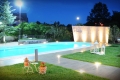 L’ obbiettivo progettuale era quello di creare un’ area esterna dove poter trascorrere piacevoli momenti di relax durante i ricevimenti che venivano svolti all’ interno della sala ricevimenti. Altro obiettivo era proprio quello di svolgerci parte del ricevimento stesso. Il lotto era di forma irregolare. All’ interno la piscina è stata posizionata in modo da poter essere visibile sia dal livello sala che dal livello giardino. Gli spazi circostanti si alternano in aree pavimentate e in aree verdi. Lo sfondo della piscina è trattato come una enorme vela in legno dalla forma tronco-circolare che la caratterizza nell’ aspetto. L’ illuminazione a led si alterna nelle diverse tipologie uilizzate. Anno di realizzazione: 2017 Luogo di realizzazione: San Giovanni in Fiore (cs) |