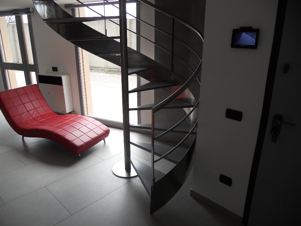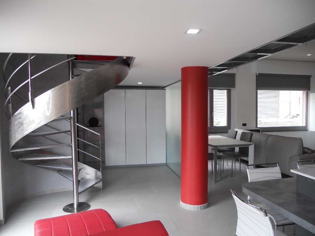 La richiesta della committenza era quella di convertire uno spazio adibito a magazzini in un loft in stile moderno e minimalista. Lo spazio si presenta come un unico ambiente con soppalco. Questo è stato realizzato in ferro e adibito a zona notte con guardaroba. Nella sala sono presenti due colonne strutturali che creano aree di separazione e si impongono nettamente con il contesto. Separato è il bagno dove trovano spazio l’applicazione di resine e pitture speciali. La cucina con conformazione a ferro di cavallo ospita un numero congruo di sedute. L’illuminazione è di tipo led. Anno di realizzazione: 2015 |